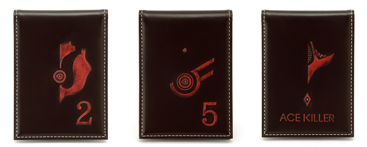 特殊加工を施した牛革を使用したパスケースには、各キャラクターのカラータイマー周辺を表現。