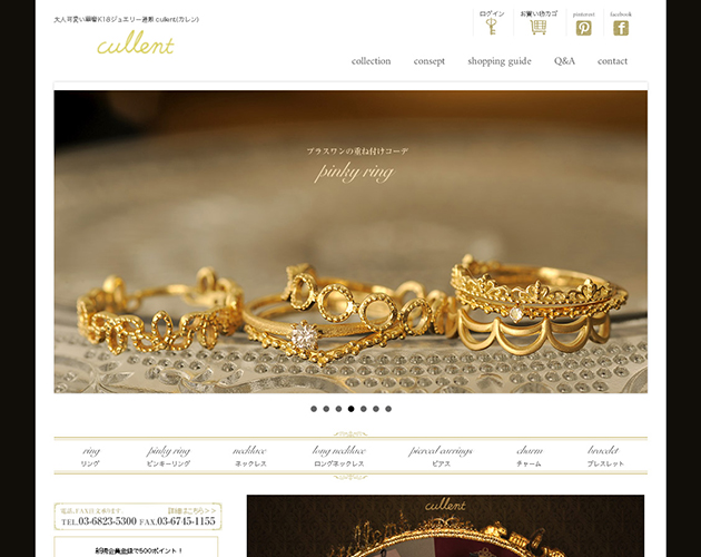 cullent(カレン) < オリジナルジュエリー > cullentが作っているのは人生を一緒に紡いでいくジュエリー。 永くご愛用いただき共に過ごすことで、かけがえのないパートナーのようなジュエリーになれることを願い、ひとつひとつ心を込めてお作りしています。 販売店舗 公式オンラインショップ お買い物はこちらから その他 販売モール等 Rakuten Yahoo auPayマーケット amazon facebook Instagram Pinterest
